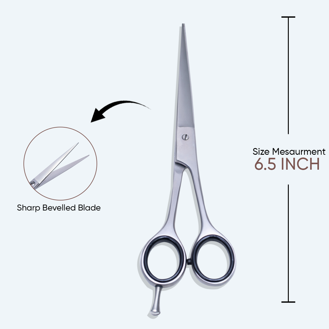The 6.5-inch sharp bevelled blade barber shear scissors with a screw adjuster, rubber silencer, and ergonomic handle are designed to deliver outstanding performance, precision, and comfort for professional hairdressers and barbers. Here’s a detailed overview of these high-quality barber shears: