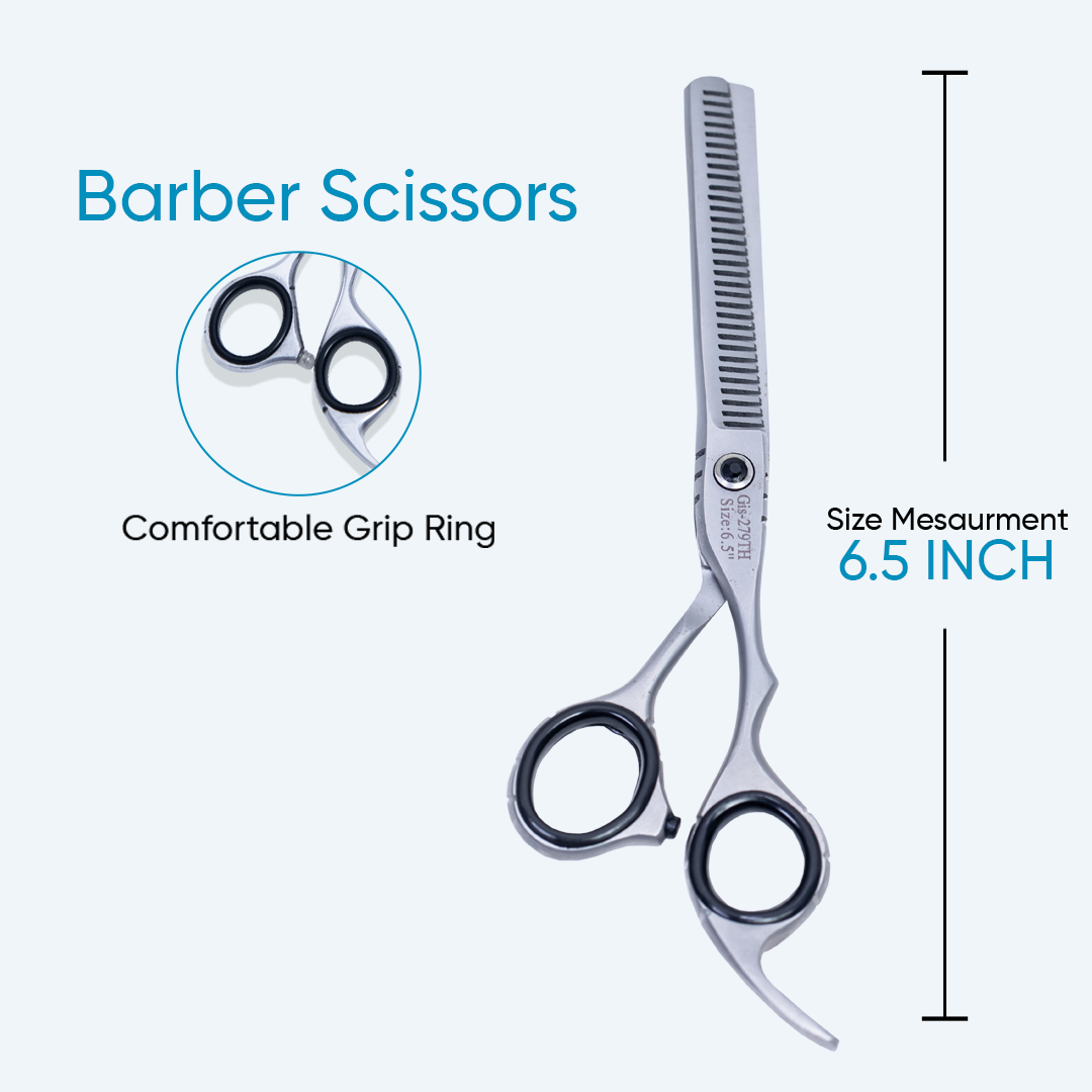 The 6.5-inch sharp blade barber thinning shear scissors with a screw adjuster, rubber silencer, and comfortable grip ring are crafted to provide superior cutting precision and user comfort. These professional thinning shears are ideal for achieving seamless texture and volume reduction in hair, making them a must-have tool for barbers and hairdressers. Here’s a detailed breakdown of their features and benefits: