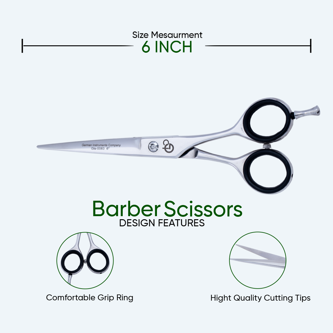 The 6-inch barber shear scissors with a screw adjuster, rubber silencer, and finger rest are designed to provide professional hairdressers and barbers with superior performance, precision, and comfort. Here’s an in-depth look at these high-quality barber shears: