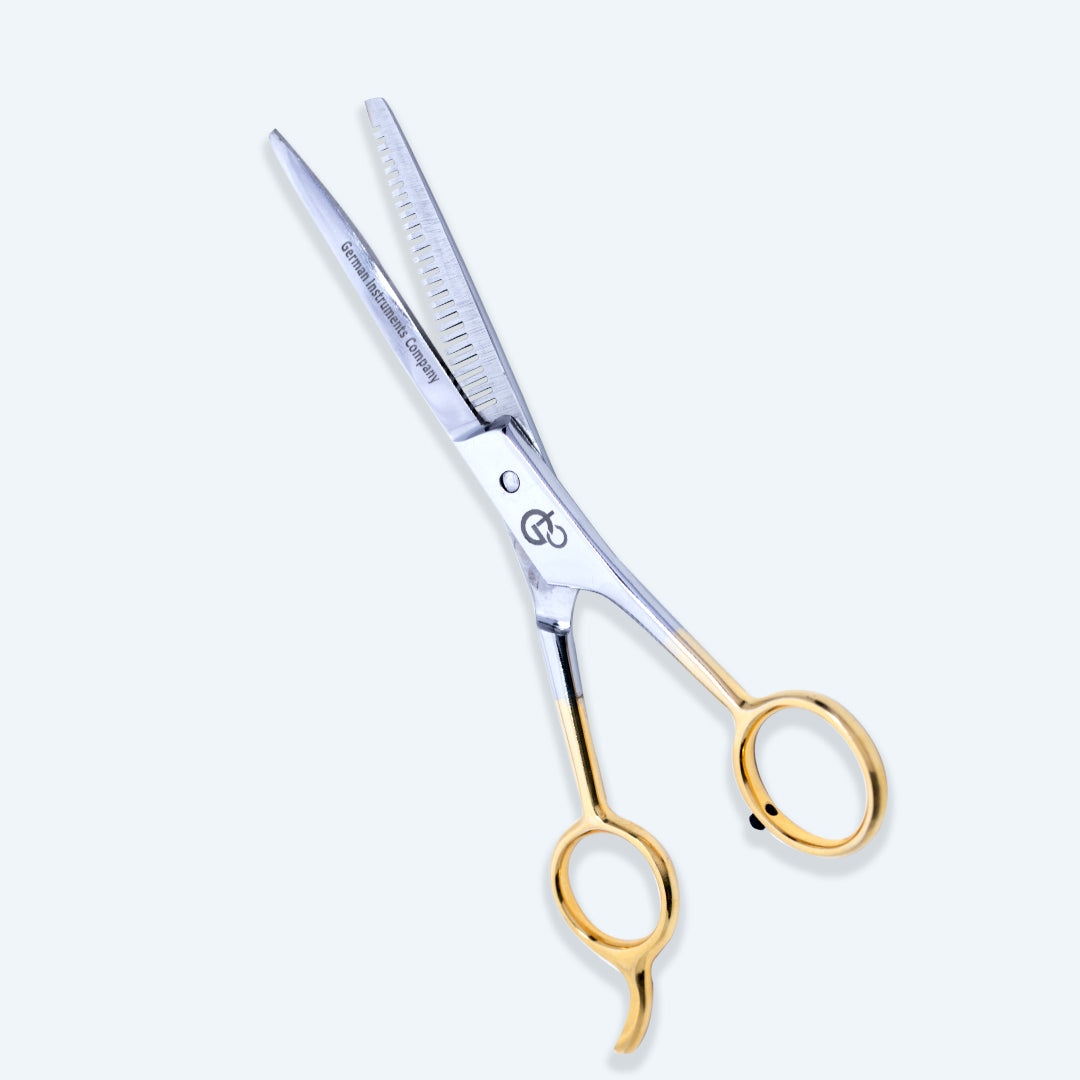 The 6-inch German stainless steel shiny barber SuperCut thinning scissors with a flat screw adjuster and finger rest are designed to deliver superior performance for professional barbers and hairdressers. Here is a comprehensive look at these high-quality thinning scissors: