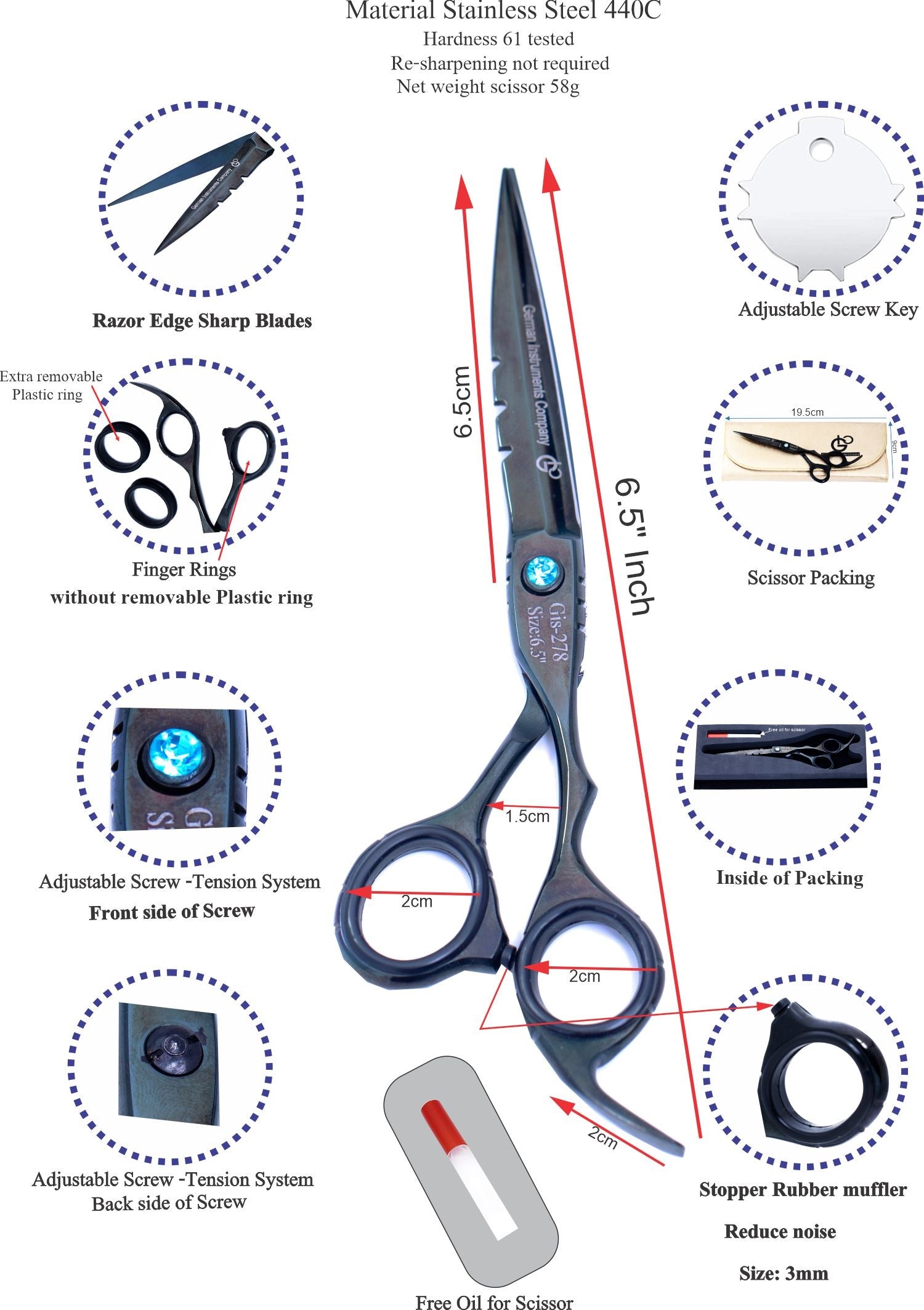 Professional Hair Scissors 6.5 Inch with Rozer Edge Sharp Blades, 440C Steel Hair Cutting Scissors with Elegant Sheath, Adjustable Screw